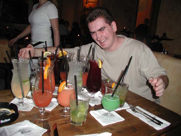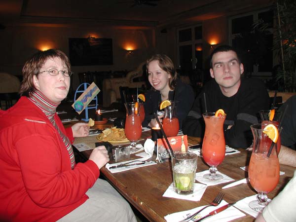Eine Kellnerin, Oxy mit leckerem Cocktail und ein Max der sich in's Bild mogelt!
