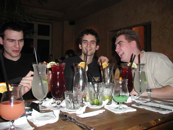 Die Stimmung von Max, hurax und CuChulinn steigt proportional zum sinkenden Cocktailspiegel...